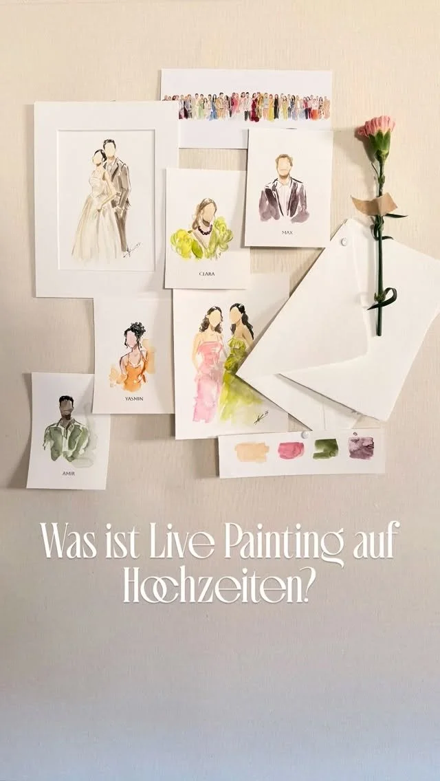 Meine Live Illustrationen verleihen jeder Veranstaltung eine ganz besondere Note. Die Gäste werden auf besondere und elegante Weise gemalt und nehmen ein einzigartiges Kunstwerk als Andenken mit nach Hause. Meine Arbeit und die Verwendung von hochwertigen Materialien garantieren, dass jede Illustration ein kleines Meisterwerk wird, das den Tag auf eine künstlerische und wertvolle Weise festhält.