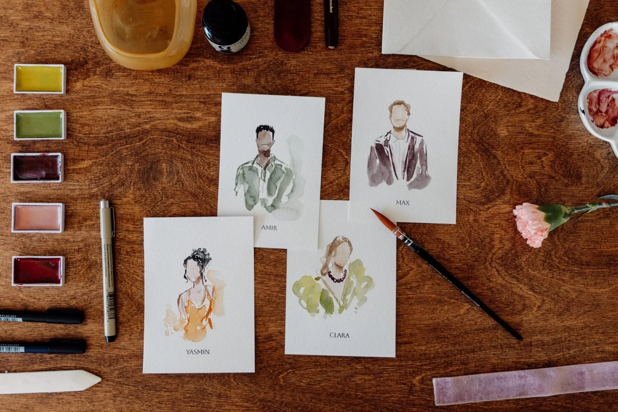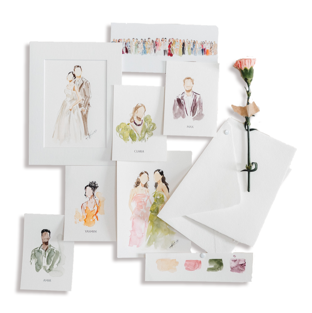 Meine Live Illustrationen verleihen jeder Veranstaltung eine ganz besondere Note. Die Gäste werden auf besondere und elegante Weise gemalt und nehmen ein einzigartiges Kunstwerk als Andenken mit nach Hause. Meine Arbeit und die Verwendung von hochwertigen Materialien garantieren, dass jede Illustration ein kleines Meisterwerk wird, das den Tag auf eine künstlerische und wertvolle Weise festhält.