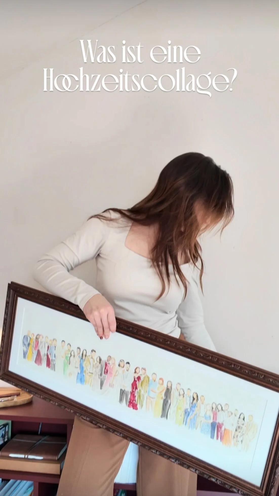 Die Hochzeitscollage oder Gästecollage ist die Zusammenstellung aller Illustrationen in einem gerahmten Bild. Dieses wird nach dem Event in meinem Studio angefertigt und dem Brautpaar (Geburtstagskind, Veranstalter) ca. 3-5 Monate Wochen nach der Veranstaltung zugesendet.